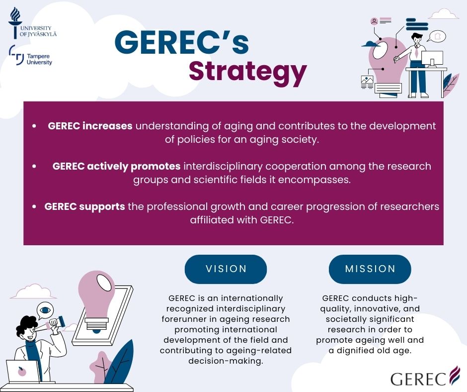 GEREC is an internationally recognized interdisciplinary forerunner in ageing research promoting international development of the field and contributing to ageing-related decision-making.