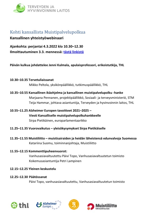 Kohti kansallista muistipalvelupolkua -yhteistyöwebinaari 4.3.2022