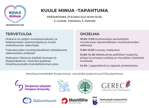 Lisätietoa hankkeesta ja tapahtumasta: https://projects.tuni.fi/kuuleminua/