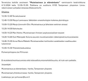 ”Muistisairaus ja elämänlaatu” -seminaari 4.12.2024.